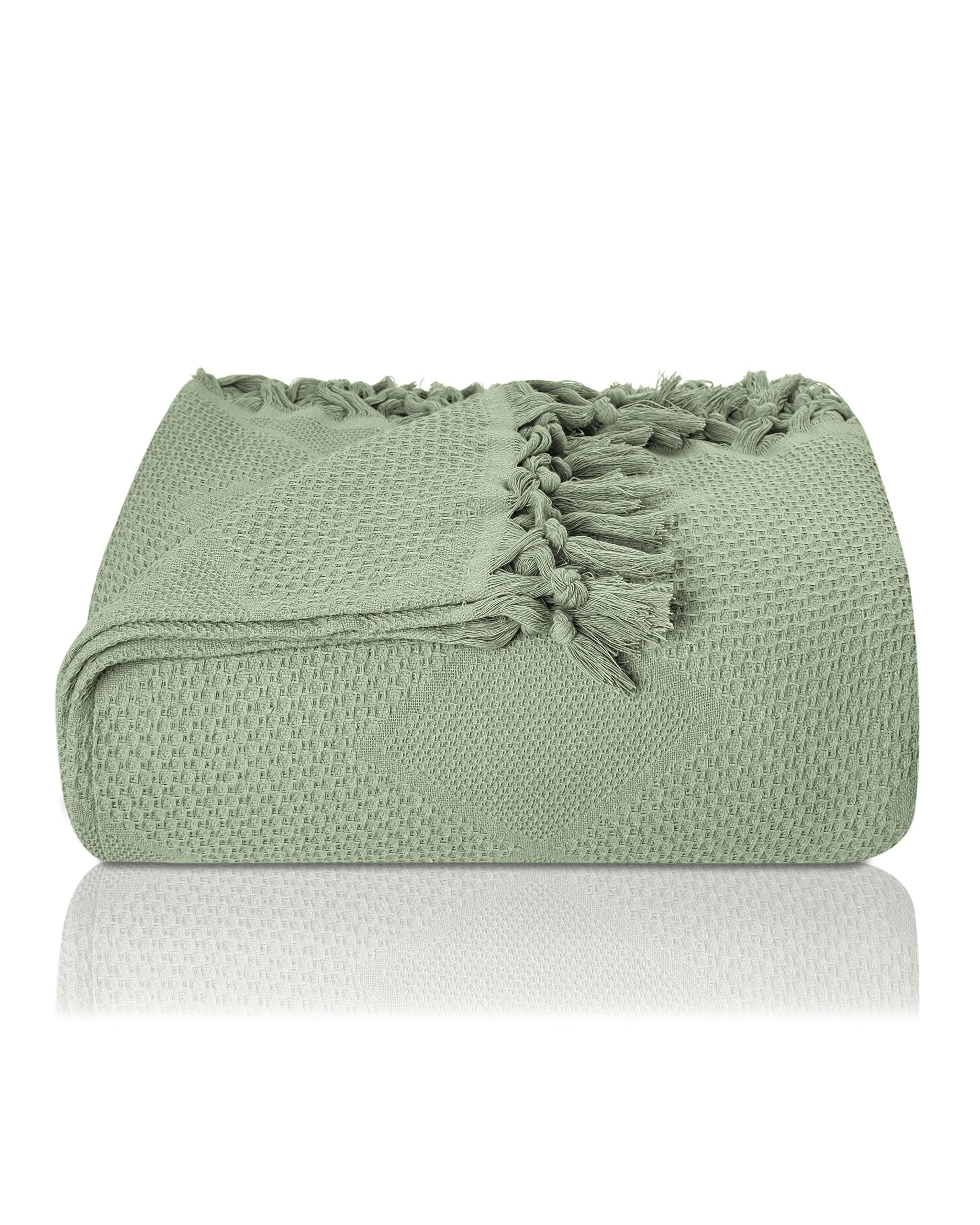 Alopini Coperta in Cotone Piqué a Nido d'Ape Frange Annodate a Mano