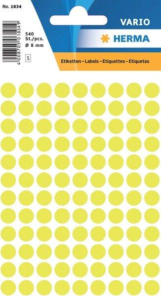 HERMA, HERMA Etiketten rund 8mm 1834 leuchtgelb 540 Stück