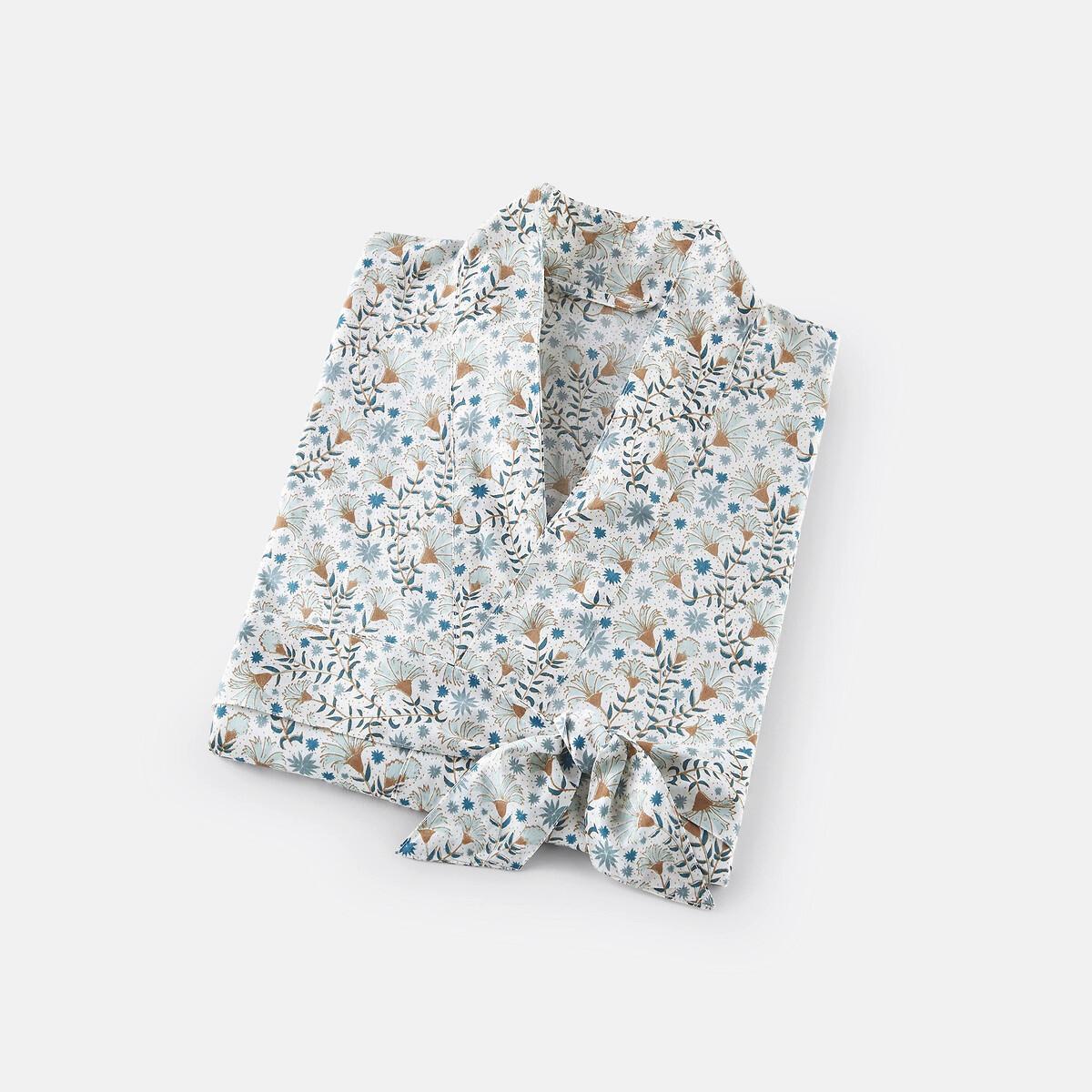 L'accappatoio kimono Kalyan è realizzato in leggero voile di cotone, offrendo una sensazione confortevole. Il suo design con un bellissimo motivo floreale lo rende un'aggiunta elegante a qualsiasi collezione di abbigliamento da casa. È ideale come accappatoio, vestaglia o anche come abbigliamento da spiaggia.