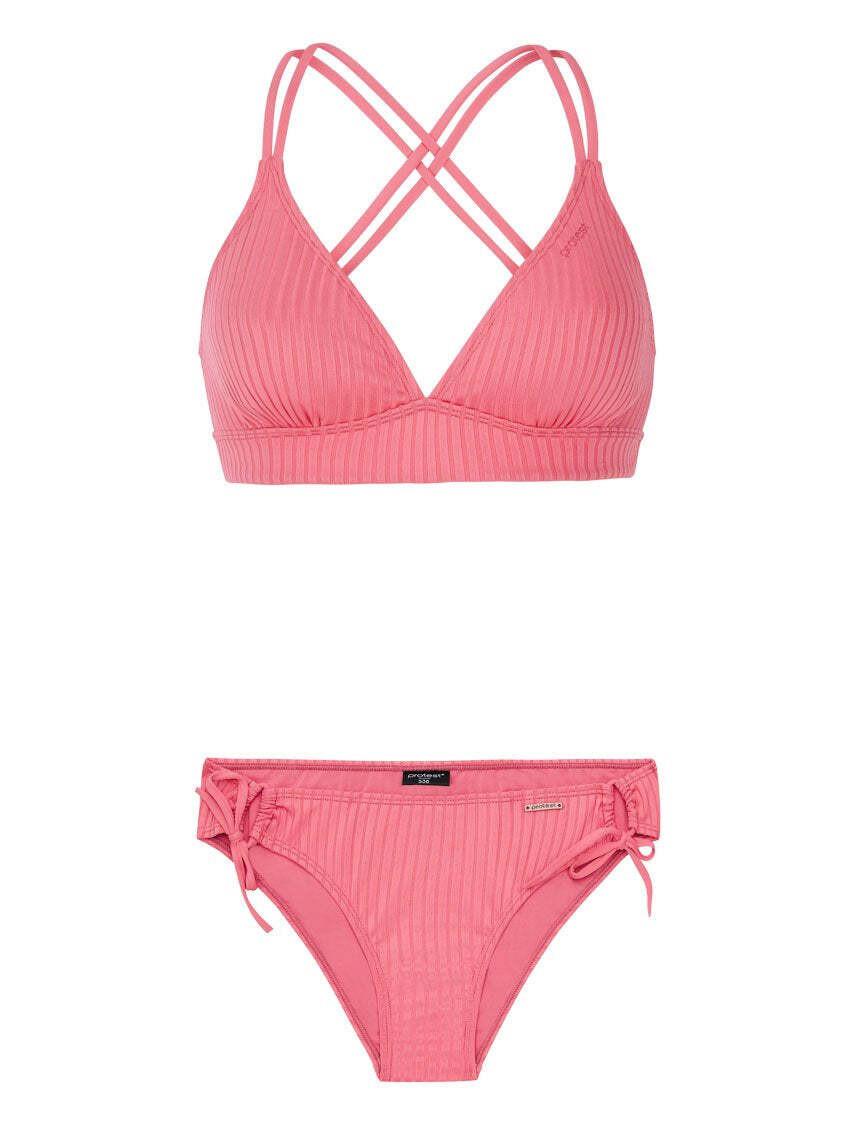 Il bikini a costine PRTCosta offre un look moderno e confortevole per i costumi da bagno. Realizzato con materiali riciclati PVRE Green, questo bikini combina sostenibilità e comfort. Il dettaglio della fibbia e l'imbottitura rimovibile consentono una regolazione individuale, mentre la vita regolare assicura comfort per tutto il giorno. Questo bikini è ideale per chi cerca stile con un tocco eco-consapevole.