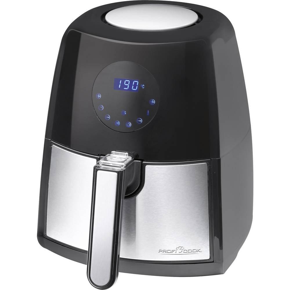 ProfiCook PC-FR 1147 H. Tipo di prodotto: Friggitrice ad aria calda, Capacità: 2,5 L, Temperatura (min): 80 °C. Tipo di costruzione: Singolo, Colore del prodotto: Nero, Acciaio inox, Posizionamento dell'apparecchio: Indipendente. Tipo di display: LED. Pot