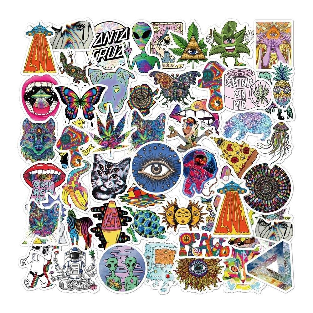 - 50 adesivi con motivi psichedelici