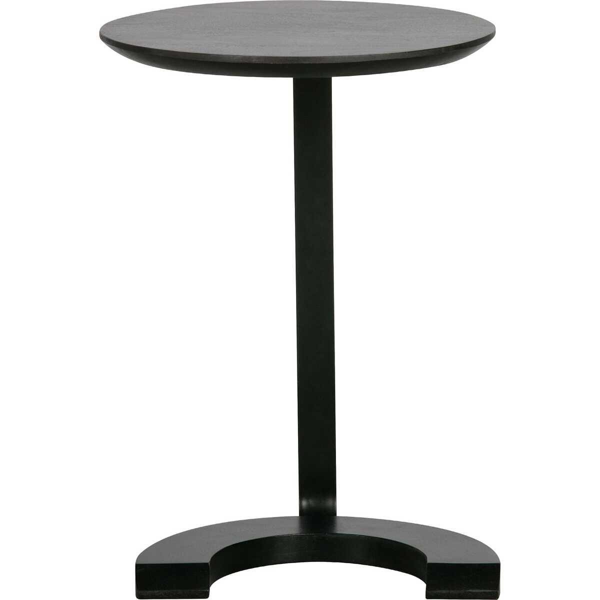 Tavolino con gamba semicircolare Piano in legno di mango con superficie nera opaca Struttura in metallo con verniciatura a polvere nera H 57 x L 39 x P 39 cm Il tavolino slim Floor ha un piano rotondo in spesso legno di mango con rivestimento nero opaco. Questo rivestimento garantisce che il piano del tavolo sia protetto da graffi, sporco e macchie. La struttura in metallo è leggermente smussata verso il pavimento e ha una base semicircolare. Il tavolino discreto può essere facilmente spinto accanto al divano, in modo da avere a portata di mano bevande e riviste. Il tavolino Floor ha un'altezza di 57 cm. Il piano del tavolo ha un diametro di 39 cm. Floor pesa solo 4 kg e ha una capacità di carico di 5 kg. Per proteggere il pavimento, inserire dei pattini in feltro sotto la gamba del tavolo.