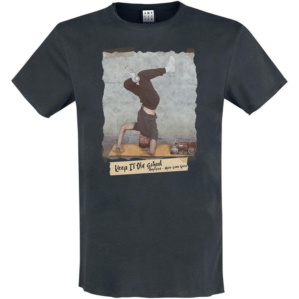 Questa T-shirt presenta una stampa grafica unica che cattura un'atmosfera nostalgica. Il design mostra un breakdancer in posizione di verticale, accompagnato da un classico boombox e dalla frase "Keep It Old School Amplified - Make Some Noise". Questa T-shirt è un capo d'eccezione per chi apprezza la cultura vintage e lo stile urbano.