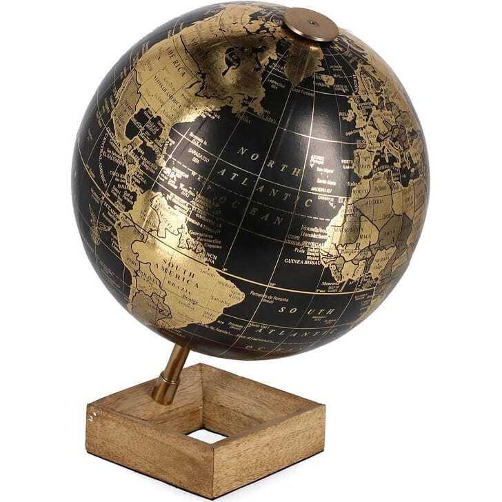 Mappamondo decorativo in plastica, alluminio e legno di mango, colore nero, Ø24 x 32hSolo per uso decorativoProdotto realizzato a manoEventuali variazioni di colore, tonalità o imperfezioni sono considerate una caratteristica di unicità