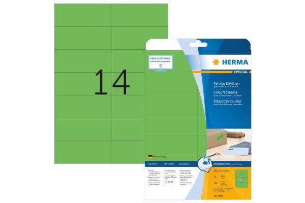 HERMA, Herma 5061 Etichette 105 x 42.3 mm Carta Verde 280 pz. Permanente Etichetta universale, Etichetta segnaletica I