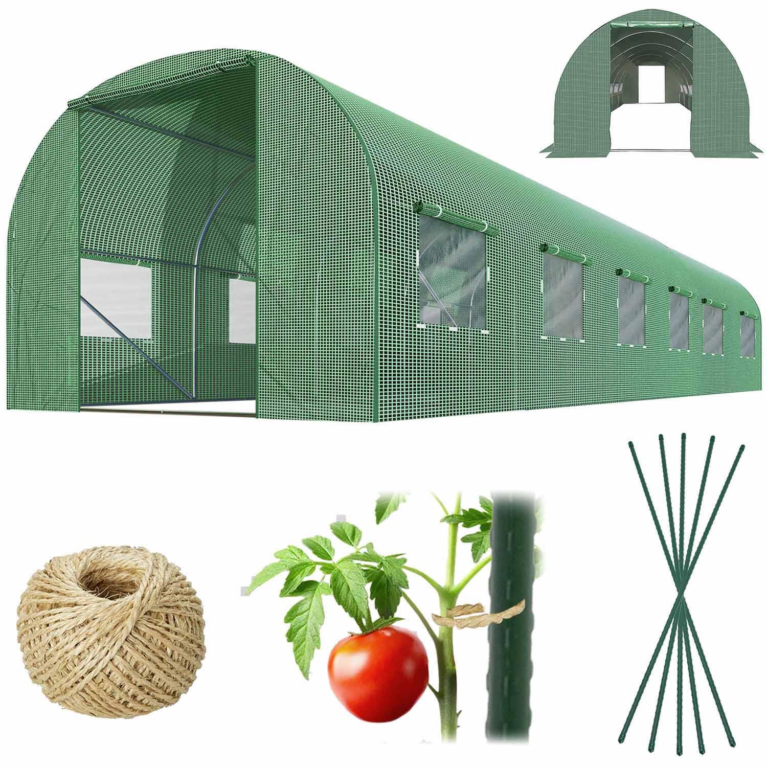 Inoltre, il tunnel da giardino viene fornito con un set gratuito di picchetti lunghi 120 cm e una corda in sisal da 100 m, perfetta per sostenere e legare piante come i pomodori. I picchetti sono realizzati in acciaio resistente, rivestiti in plastica e presentano una punta affilata per un facile inserimento nel terreno. Questo pacchetto completo garantisce che le tue piante abbiano il supporto di cui hanno bisogno per prosperare.