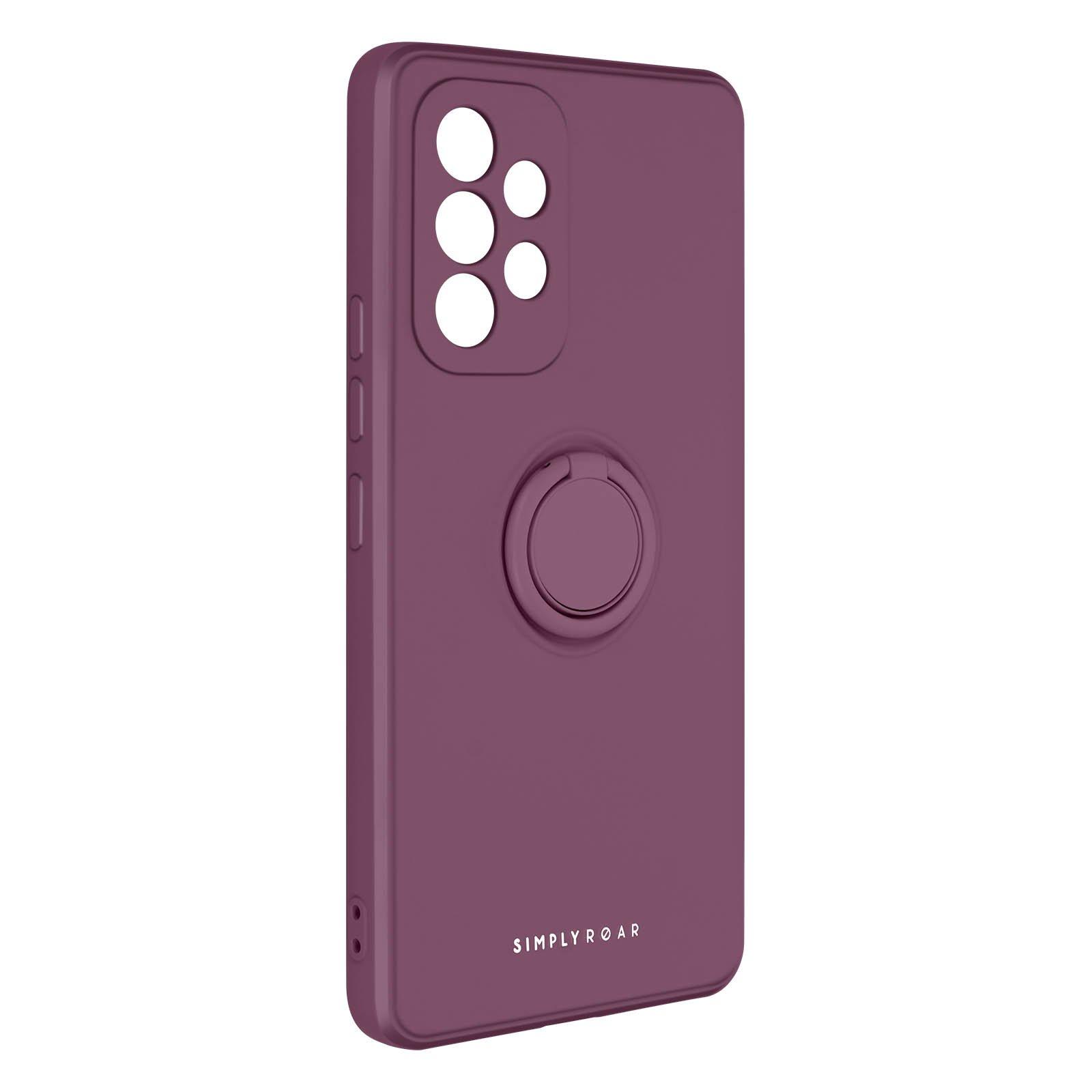 Cover per Samsung Galaxy A53 5G, marchio Roar. Realizzata in gel di silicone flessibile, resistente a urti, graffi e impatti. Anello di sostegno integrato per una presa sicura del telefono, con funzione supporto video. Blocco della fotocamera coperto.