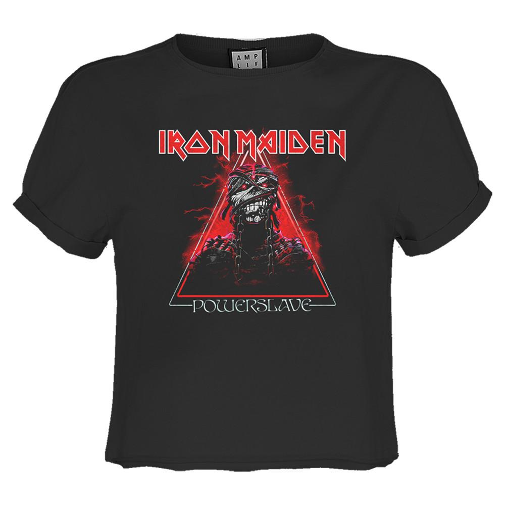 Questo top corto presenta una stampa grafica sorprendente ispirata all'iconico album Powerslave. Il design include il logo della band e un'illustrazione dettagliata, rendendolo un capo distintivo per i fan.
