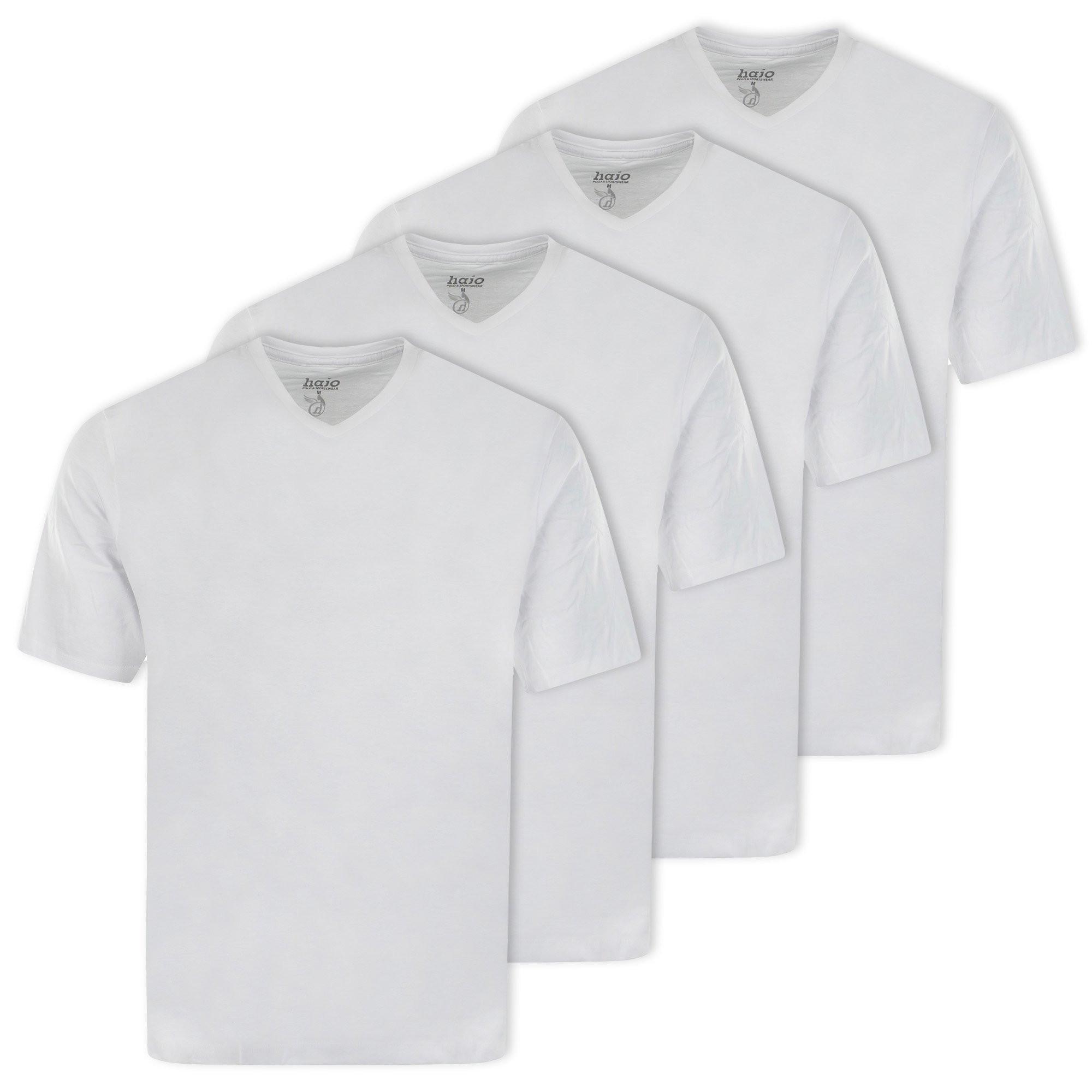 Quattro magliette della marca hajo. Camicia a maniche corte con scollo a V, ideale come intimo, puro cotone, qualità single jersey morbido.