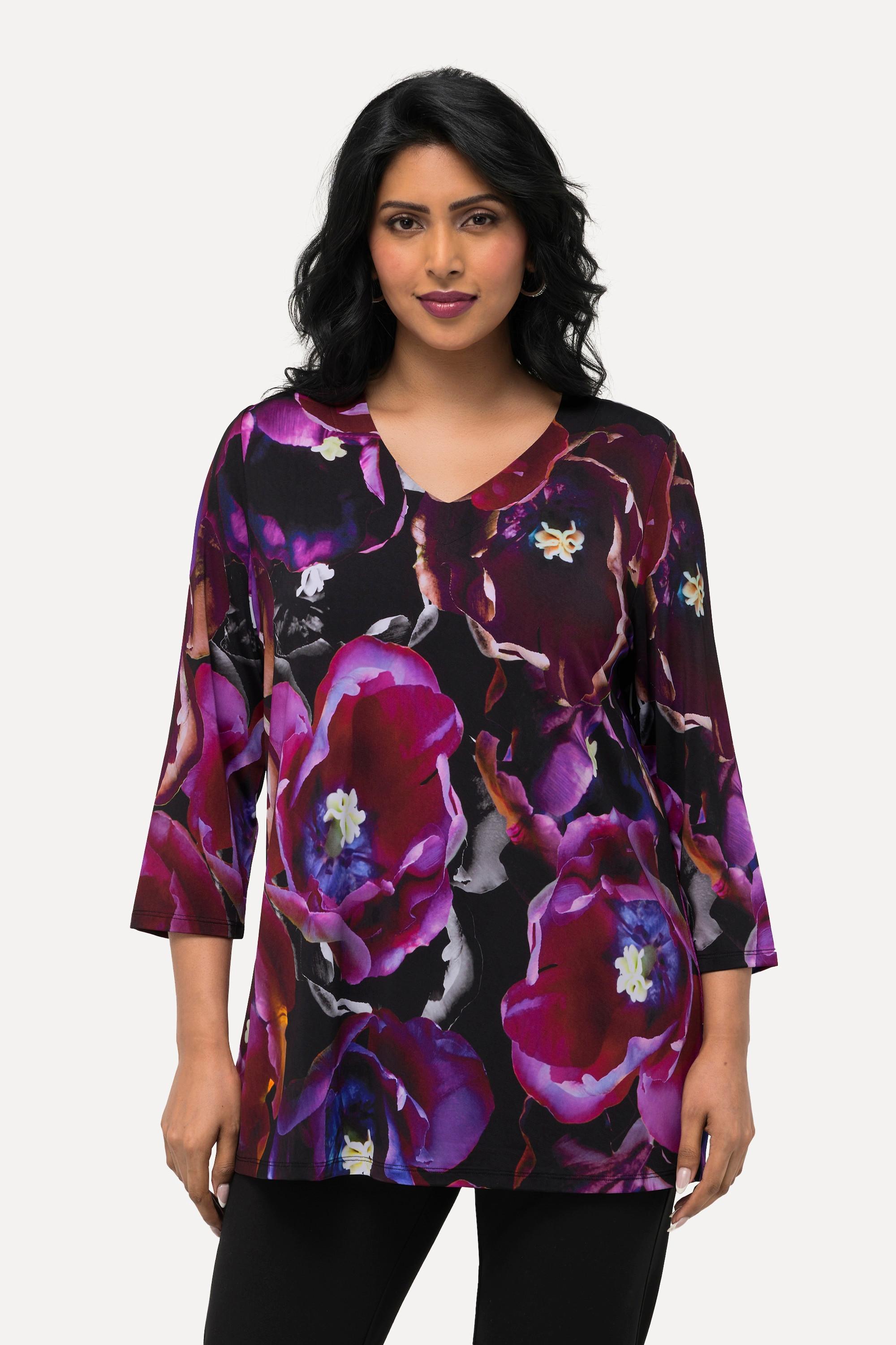 Ulla Popken Maglia Slinky Stampa Tulipani Scollo V Maniche 3/4