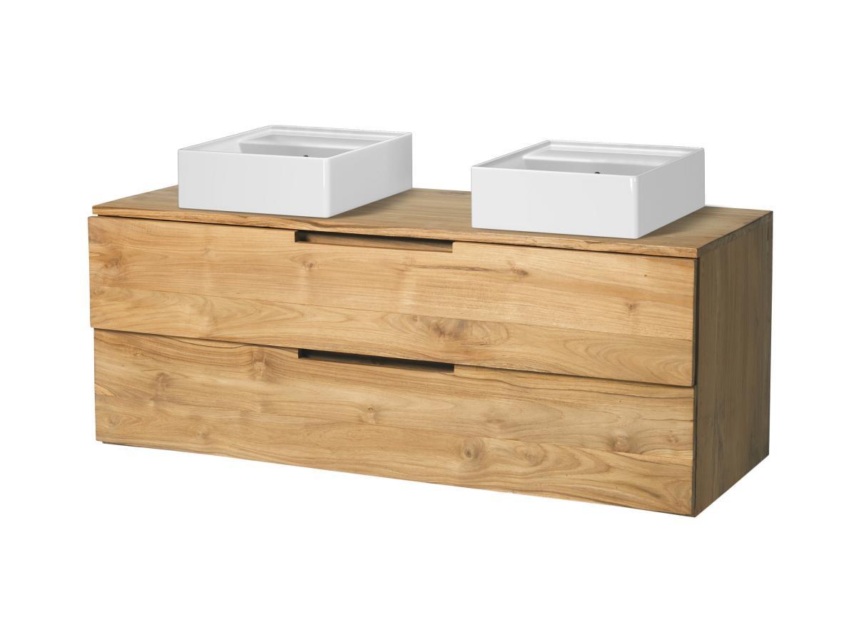 Vente-unique, Mobili per bagno sospeso con lavabo doppio 2 cassetti 115 cm in Teak chiaro - BIMBING