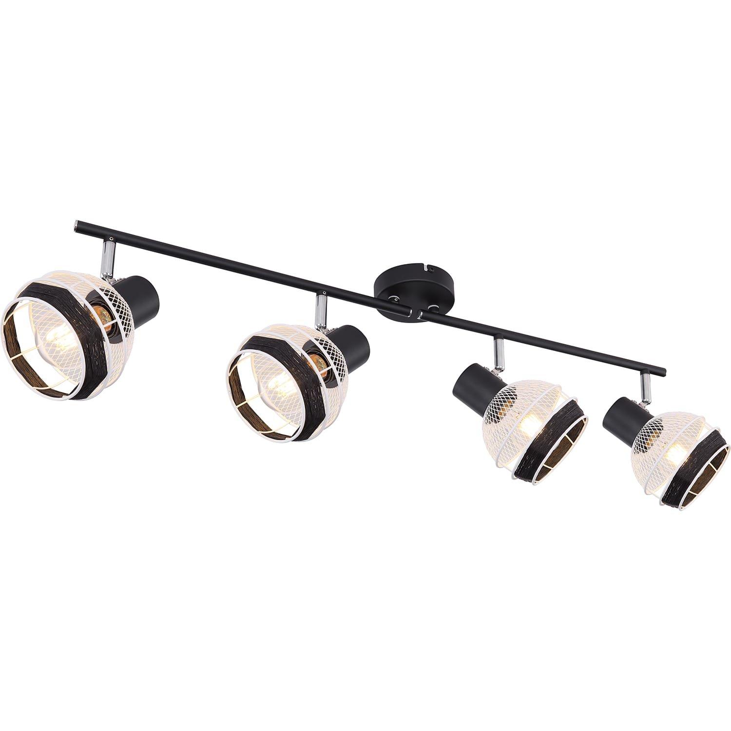 Questa interessante serie GRIDDY combina diversi materiali: il metallo nero opaco o bianco con la corda di canapa di colore nero.I quattro faretti su due bracci convincono per il design dei paralumi, che sono trecce di metallo e sono circondati da una corda di canapa nera nella parte anteriore. Scegliendo liberamente la sorgente luminosa (4xE27 / max. 40W) puoi determinare tu stesso l'intensità e il colore della luce di questa lampada da interni. A causa della loro longevità e risparmio energetico, consigliamo le lampade a LED. Questa lampada spot è adatta per camere da letto, corridoi, soggiorni e sale da pranzo.