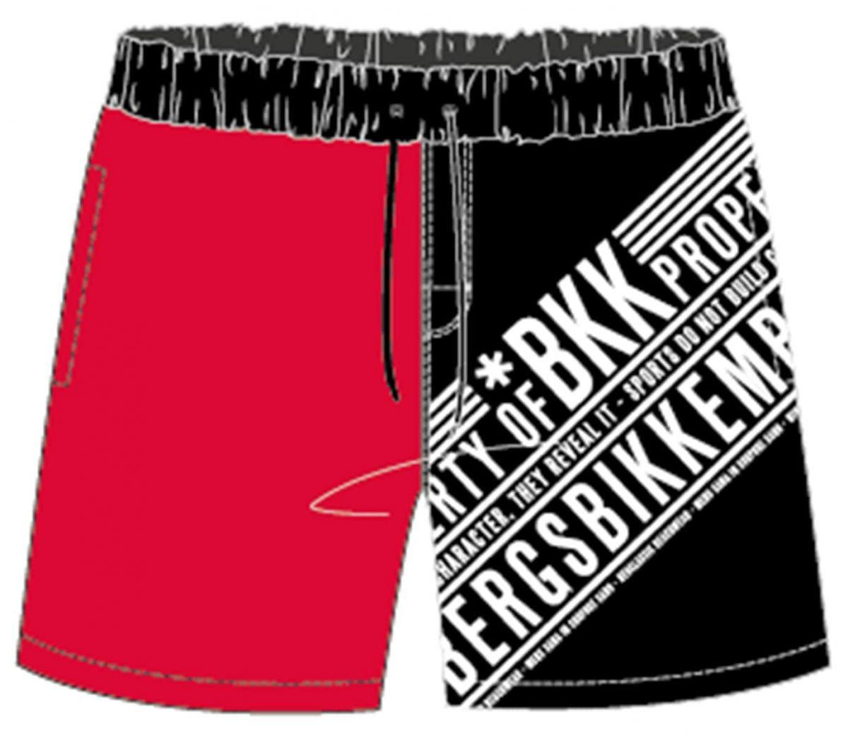 Questi pantaloncini da bagno presentano un sorprendente design bicolore, con una gamba in rosso tinta unita e l'altra in nero con un audace testo grafico bianco. La vita elasticizzata con coulisse assicura una vestibilità regolare sicura e confortevole, rendendoli ideali per varie attività acquatiche o per un abbigliamento casual.