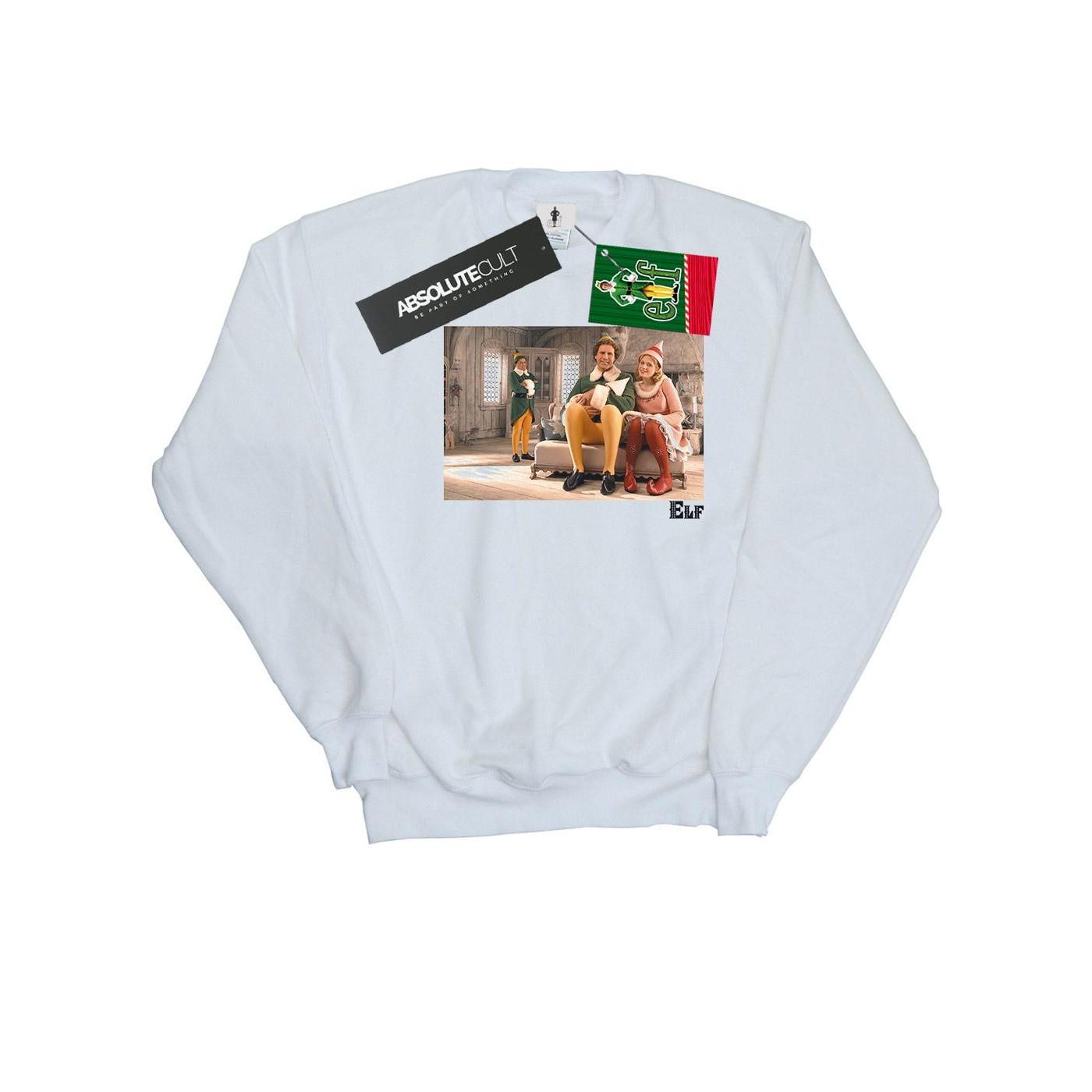 Questa felpa presenta un classico design a girocollo e maniche lunghe, offrendo una vestibilità comoda e rilassata. La parte anteriore è decorata con una stampa grafica di Buddy e Jovie del film "Elf", rendendola un'aggiunta divertente a qualsiasi guardaroba casual.