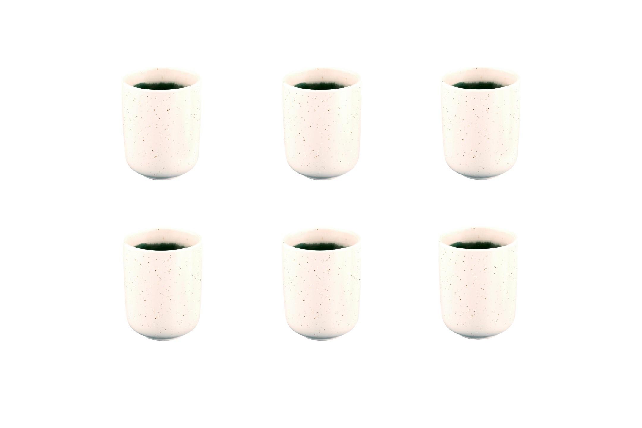 Questa tazza dal design chiaro ti sorprenderà ancora e ancora. Non è adatto solo per bevande calde e fredde, ma anche per essere utilizzato come vaso per piante o portapenne. Dopo che l'argilla è stata cotta per la prima volta a bassa temperatura, i pigmenti vengono aggiunti ai rivestimenti reattivi, che vengono applicati al gres, conferendogli un profondo rilievo. L'aspetto delle sfumature di colore riscontrabili da un pezzo all'altro è il risultato di un sapiente mix artigianale tra le tecniche di cottura e le modalità di applicazione del rivestimento. La collezione OXYGEN si ispira al respiro della natura. Zen e completo come un respiro prolungato, l'approccio estetico è al centro del concetto. La sua finitura beige opaco e screziato all'esterno contrasta con il colore intenso e brillante all'interno. Ogni pezzo è unico grazie alla tecnica della smaltatura, quindi impilarlo e comporlo aggiungerà un tocco di unicità alla tua tavola.- Contiene: 6 tazze 30 cl - Collezione OSSIGENO / Declinazione GRIGIO-VERDE - Realizzata in gres con smalto reattivo - Sfumatura in bottiglia verde grigio e beige - Lavabile in lavastoviglie - e adatta al microonde - Dimensioni di un pezzo (L x P x A) 7,8 x 7,8 x 10 cm / Capacità 30 cl - Fornito in confezione infrangibile