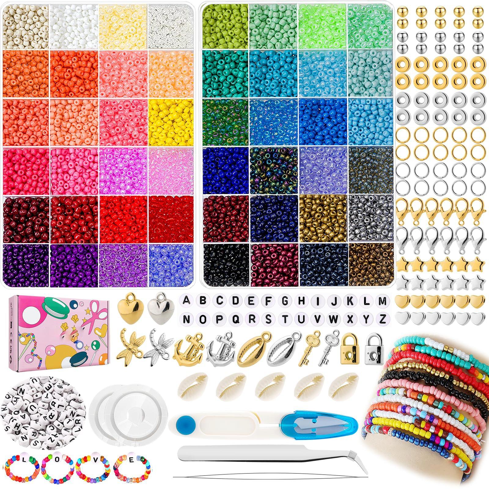Activity-board, 7000 Stück Bunte Glasperlen Set, DIY Perlen zum Auffädeln mit Buchstabenperlen für Geschenkidee Armbänder, Perlen zum Auffädeln Set für Kinder