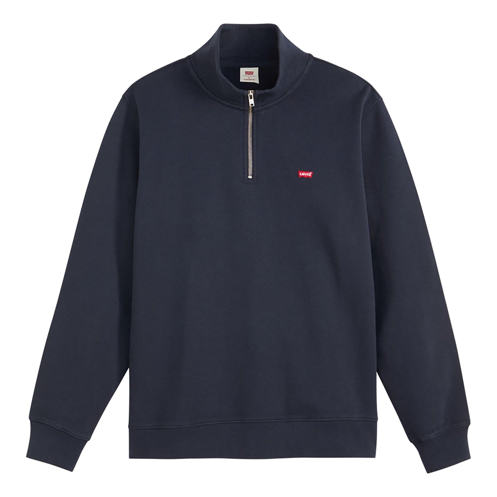 Questa comoda felpa presenta una chiusura a mezza zip, rendendola un'aggiunta versatile a qualsiasi guardaroba. Il design include un collo alto e polsini e orlo a costine per una vestibilità classica.