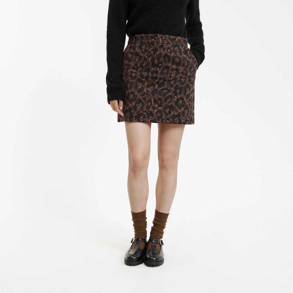 Questa minigonna a taglio dritto presenta una sorprendente stampa leopardata, offrendo una dichiarazione audace e alla moda. Il design include pratiche tasche laterali e una chiusura con bottone e cerniera per una vestibilità sicura. Questa gonna è un capo essenziale per ogni guardaroba, facile da indossare e adatta a diverse stagioni.