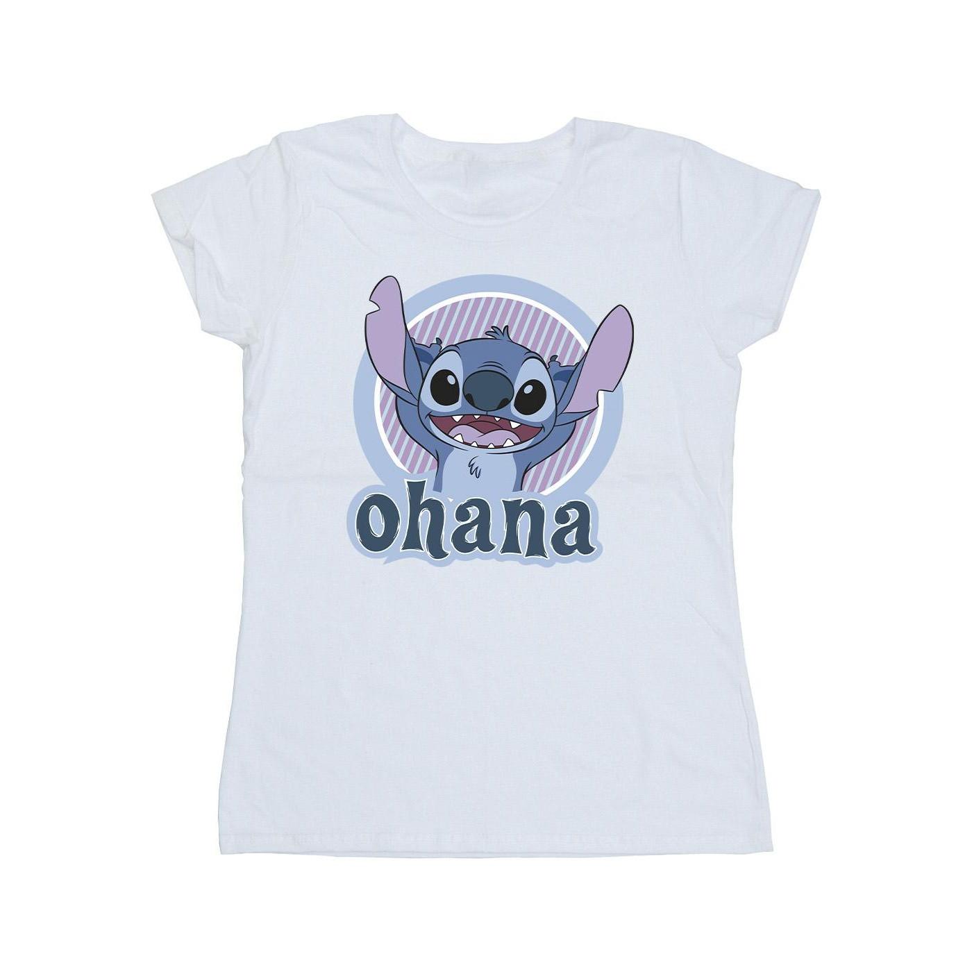 Questa t-shirt grafica presenta un design giocoso di Stitch di Lilo & Stitch di Disney, con la parola "Ohana" stampata sotto. Il design è ambientato su uno sfondo circolare a righe, aggiungendo un tocco di fascino a questo top casual. La t-shirt è realizzata in 100% cotone ring-spun, offrendo una sensazione super morbida e una vestibilità regolare confortevole.