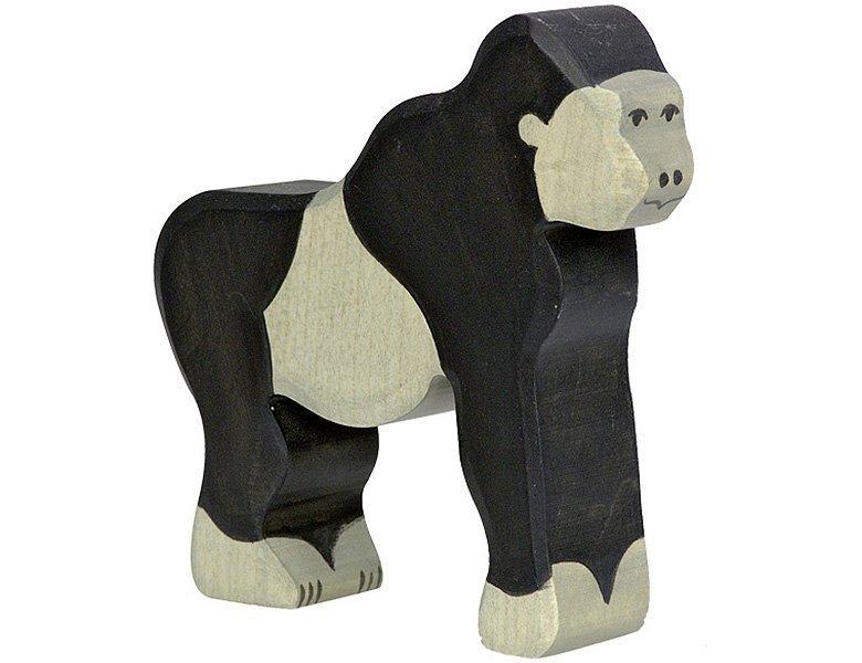 Diese Holzfigur eines Gorillas ist aus hochwertigem Ahorn- und Buchenholz handgefertigt. Sie misst 10,9 x 2,9 x 10,8 cm und ist mit umweltfreundlichen Farben auf Wasserbasis bemalt. Die sanft abgerundeten Kanten bieten Sicherheit beim Spielen.