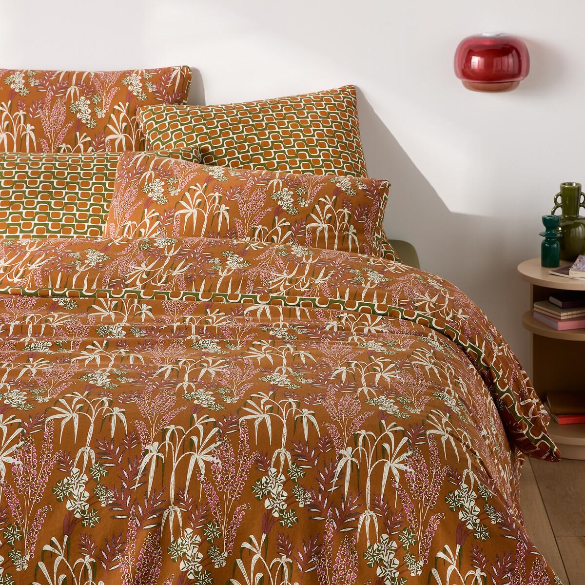 Il copripiumino Juliette presenta motivi botanici e grafici con un tocco ispirato agli anni '70. Realizzato in cotone lavato, ha un leggero effetto stropicciato ed è impreziosito da una fascia a contrasto. Questo design esclusivo è di La Redoute Intérieurs.