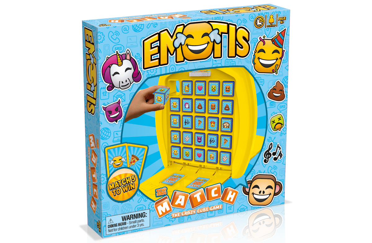 Désormais, les émoticônes ne sont plus seulement disponibles sous forme numérique, mais aussi sous forme de jeu de dés rapide d'un genre différent : avec TOP TRUMPS MATCH EMOTIS, tu "écris" des histoires à succès en un rien de temps. Que ce soit un smiley, une licorne ou un cœur, le premier qui parvient à aligner 5 cubes de son émoticône préférée est déjà tout près de la victoire. Mais il y a un twist, une fin surprenante n'est pas exclue. Le jeu de dés stratégique avec 15 émoticônes joliment dessinées pour petits et grands - également pour la route.