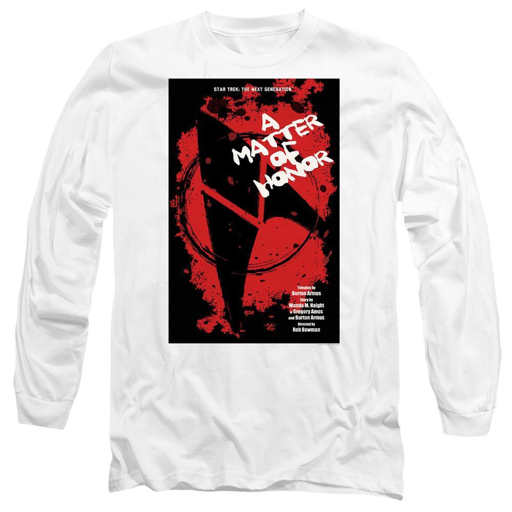 Questa t-shirt a maniche lunghe presenta una grafica ispirata a Star Trek: The Next Generation Stagione 2 Episodio 8, "A Matter of Honor". Il design cattura l'essenza dell'episodio con una rappresentazione audace e artistica.