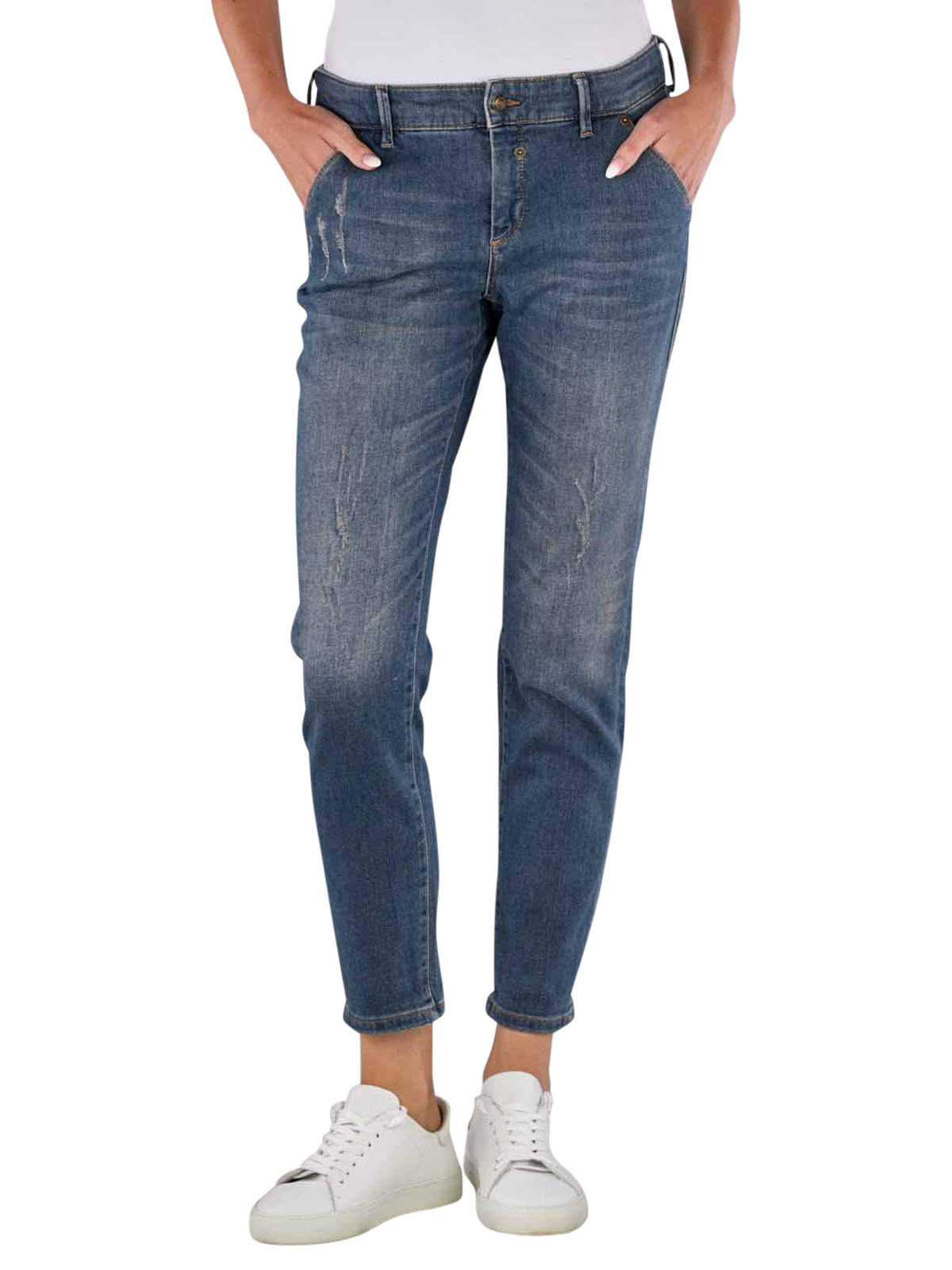 Il Vintage Denim Montana Chino in blu medio offre un look moderno. Con una vita bassa e una gamba dritta, questi jeans combinano stile e comfort. Il lavaggio medio e i dettagli destroyed conferiscono un aspetto casual e di tendenza. Realizzato con stretch per una maggiore flessibilità.