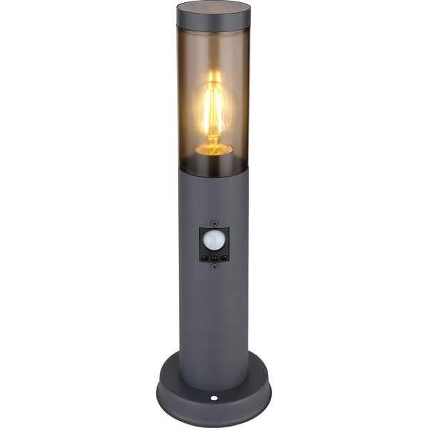 Lampada da esterno in acciaio inox antracite, plastica color fumo, sensore incluso, IP44, : 127mm, H: 450mm, escl.1x E27 15W 230V.
