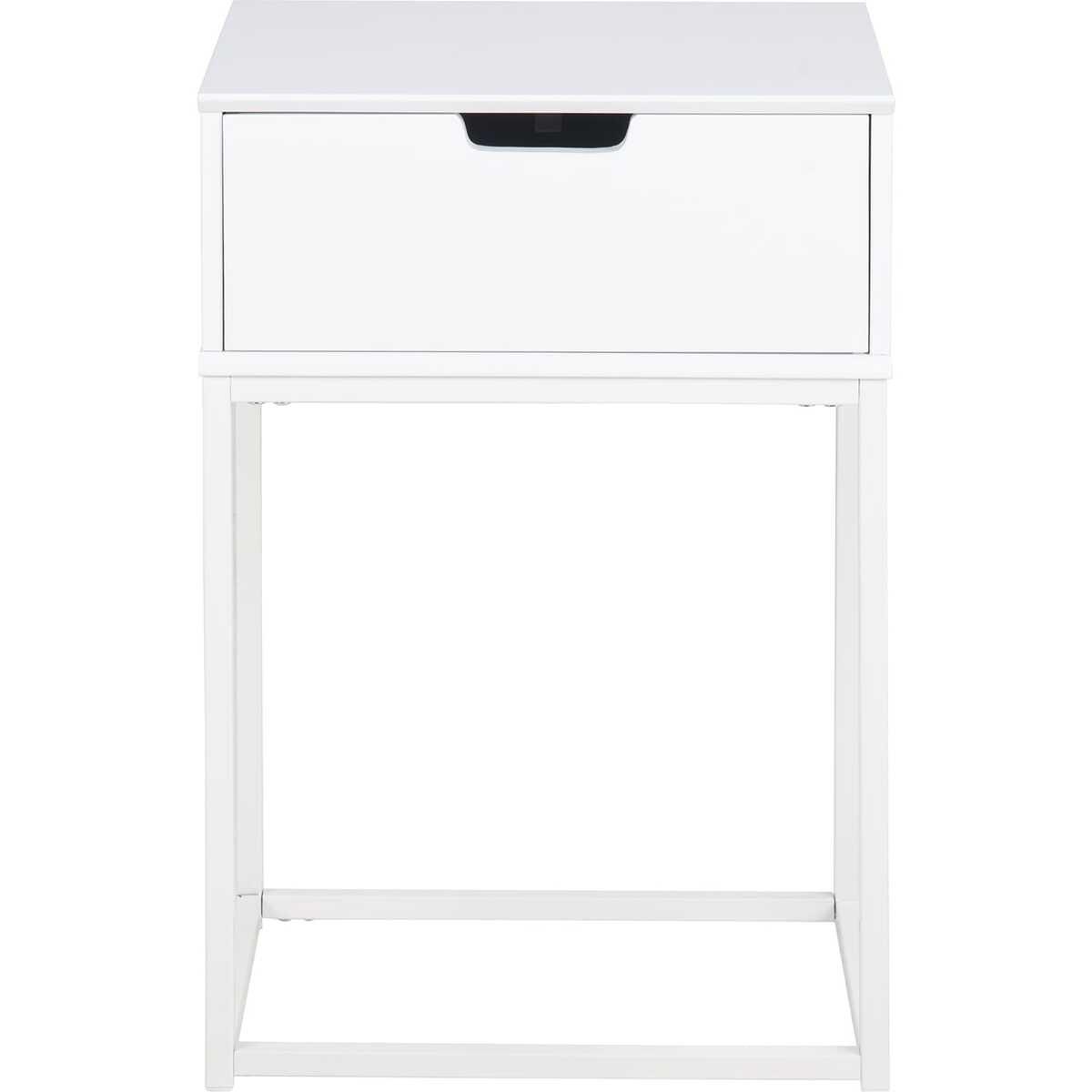 Comodino Myrta, legno bianco, laccato, 1 cassetto, gamba in metallo verniciato a polvere, biancoL:40 L:30 H:61,5 cmMutoni scandi - il nuovo trend ora disponibile in Svizzera. Prodotti esclusivi a prezzi imbattibili. Lasciatevi ispirare dalla varietà della nostra collezione. Mutoni scandi offre un'ampia gamma di prodotti per il soggiorno, la cucina, la camera da letto e il corridoio.Colore struttura / gambe: biancoMateriale della struttura / gambe: metalloMateriale di superficie telaio / gambe: metalloTrattamento superficiale gambe: verniciato a polvereTipo di gambe: quadrateProtezione del pavimento: Tappi in plastica per i piedi Materiale principale: MDFForma principale: rettangolareForma del bordo del tavolo: dritto Trattamento superficiale del piano del tavolo: laccatoColore del piano del tavolo: biancoNumero di cassetti (pz): 1