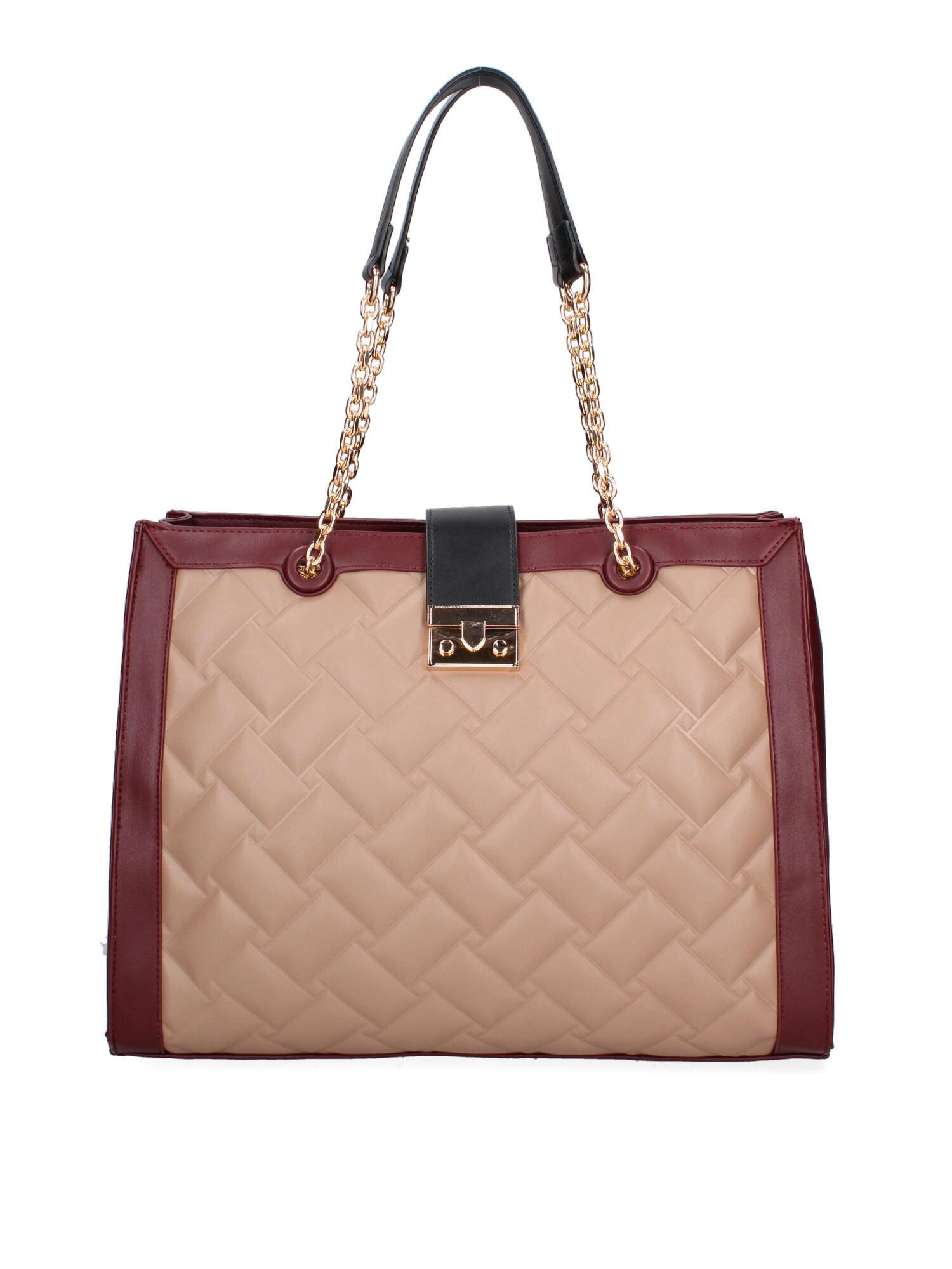 Questa borsa shopper combina praticità con un design chic, rendendola un accessorio versatile per varie occasioni. Il pannello frontale trapuntato aggiunge un tocco di sofisticazione, mentre i pannelli laterali a contrasto e il manico superiore creano un look raffinato. La borsa è assicurata con una chiusura a girello elegante, garantendo la sicurezza degli effetti personali.