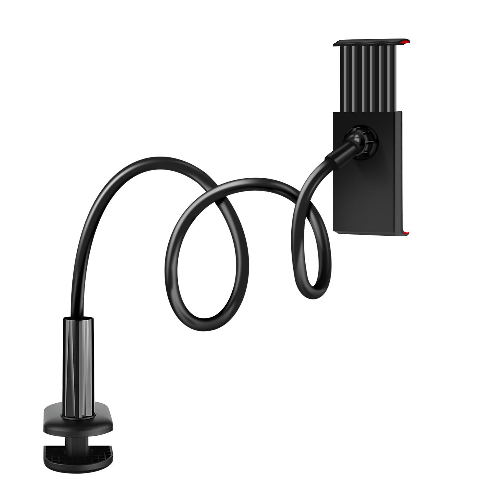 Supporto da tavolo per smartphone e tablet larghi tra 12 e 19 cm. Ha una testa rotante a 360° e un braccio flessibile. Si può fissare al bordo di un mobile spesso 7 cm. Il design robusto assicura che il tuo dispositivo rimanga saldamente in posizione.