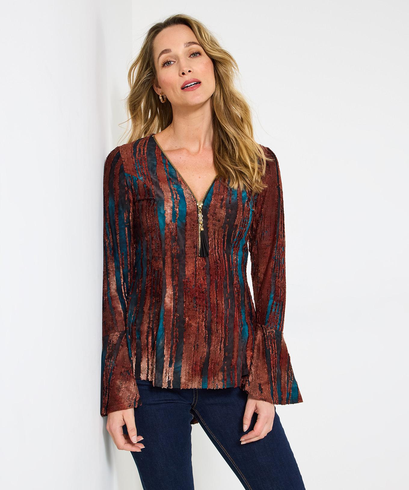 Joe Browns Top Pizzo Contrasto Maniche a Tromba Cerniera Frontale