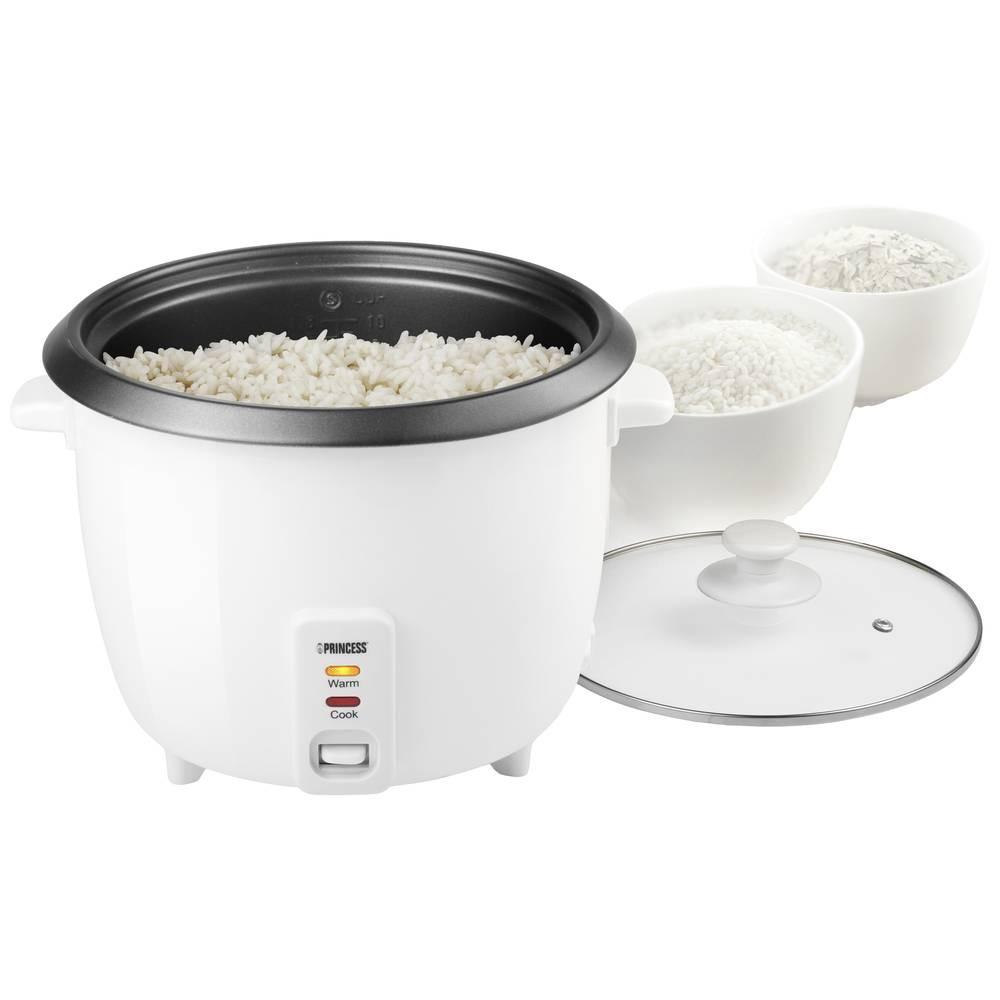 Mit dem Princess Reiskocher verlassen Sie Ihre Reiskochkünste nie wieder. In nur 20 Minuten bereitet Ihnen der Reiskocher bis zu 10 Portionen perfekt körnigen Reis zu. Mit der Warmhaltefunktion können Sie den Reis mehrere Stunden warm halten und brauchen Sie somit nicht zu beeilen. Auch perfekt geeignet, um andere Reisspezialitäten zuzubereiten, zum Beispiel braunen Reis oder Quinoa. Nie wieder angebrannter Reis Der Princess Reiskocher ist mit einem Trockengehschutz ausgestattet, sodass Sie nie wieder trockenen oder verbrannten Reis essen müssen. Sogar grössere Mengen von bis zu 10 Portionen gelingen perfekt und körnig. Mit der Warmhaltefunktion wird die Reistemperatur auf 70 Grad gehalten. Dadurch können Sie den Reis sogar mehrere Stunden nach dem Kochen noch warm servieren. Für verschiedene Reisvariationen geeignet Mit dem Princess Reisgarer können Sie nicht nur weissen Reis mühelos zubereiten, Sie können auch andere Reisvarianten wie Wildreis und braunen Reis damit kochen. In dem Reistopf können Sie sogar verschiedene Zerealien wie Hafer und Quinoa problemlos zubereiten werden. Das Gerät arbeitet vollautomatisch und leistet besonders an hektischen Tagen gute Dienste. Einfach zu reinigen Der herausnehmbare Innentopf ist antihaftbeschichtet. Er ist deshalb leicht zu reinigen und spülmaschinengeeignet. Mit dem separaten Ein/Aus-Schalter können Sie den Reisgarer problemlos ein- und ausschalten, wann Sie möchten. Der Princess Reiskocher ist dank Überhitzungsschutz und Trockengehschutz gebrauchssicher.