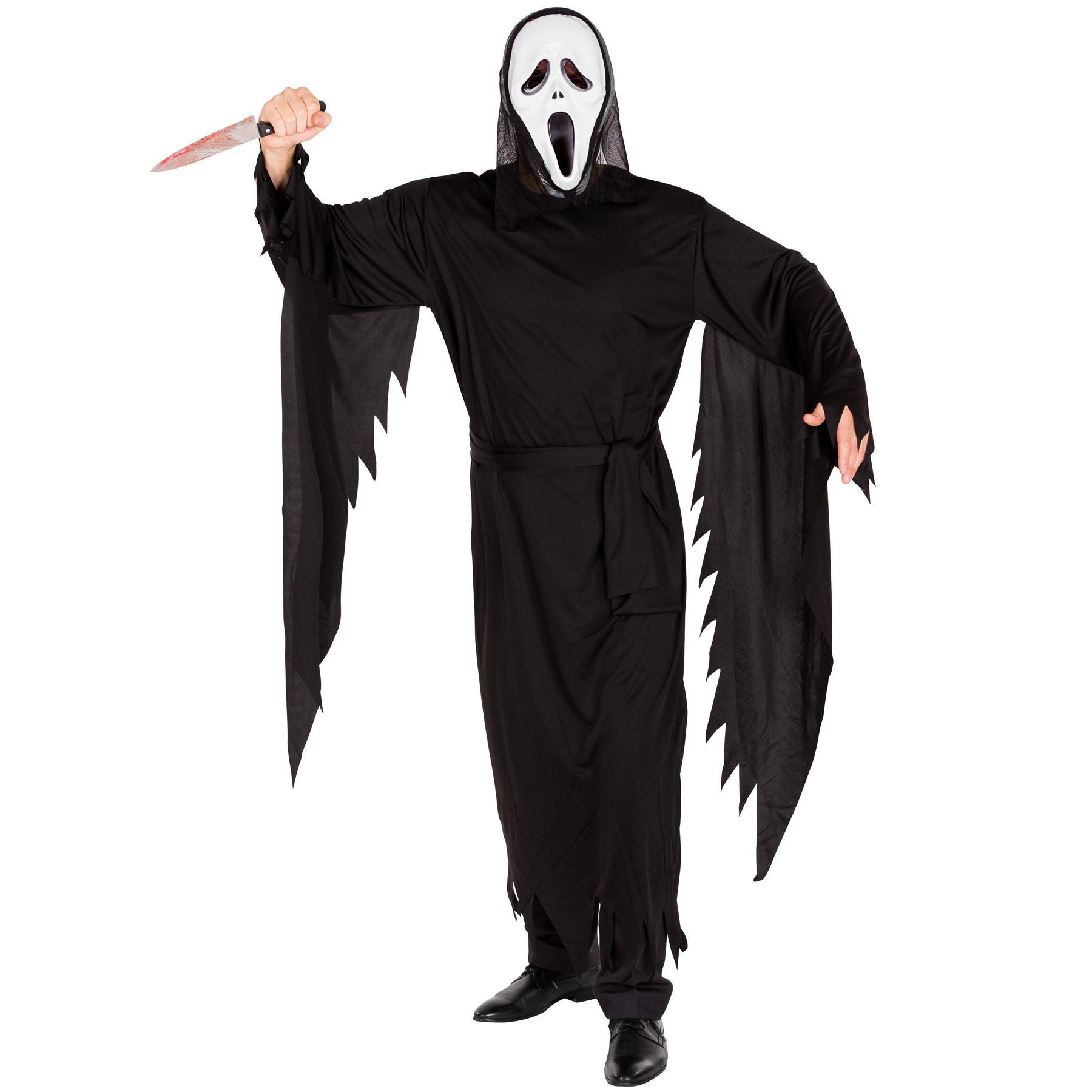Il costume da uomo la paura di Halloween si compone di una lugubre maschera e una lunga tunica di colore nero. Materiale: 100% poliestere.