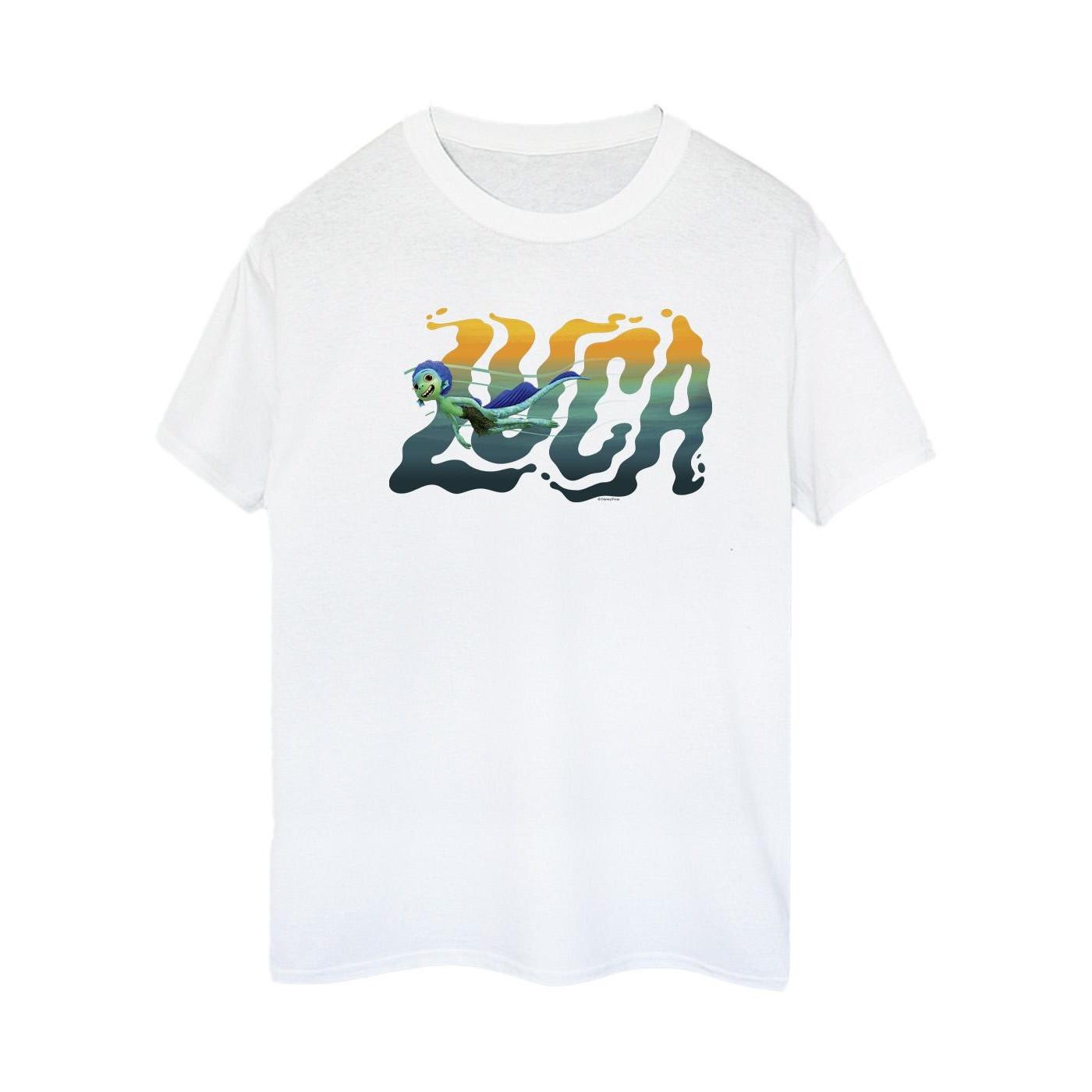 Questa T-shirt Luca Swim presenta una vivace stampa grafica ispirata al film d'animazione. Il design mostra Luca nella sua forma di mostro marino, che nuota attraverso una scritta 'LUCA' colorata e stilizzata. Questa maglietta a maniche corte offre una vestibilità comoda, rendendola un'aggiunta versatile a qualsiasi guardaroba casual.