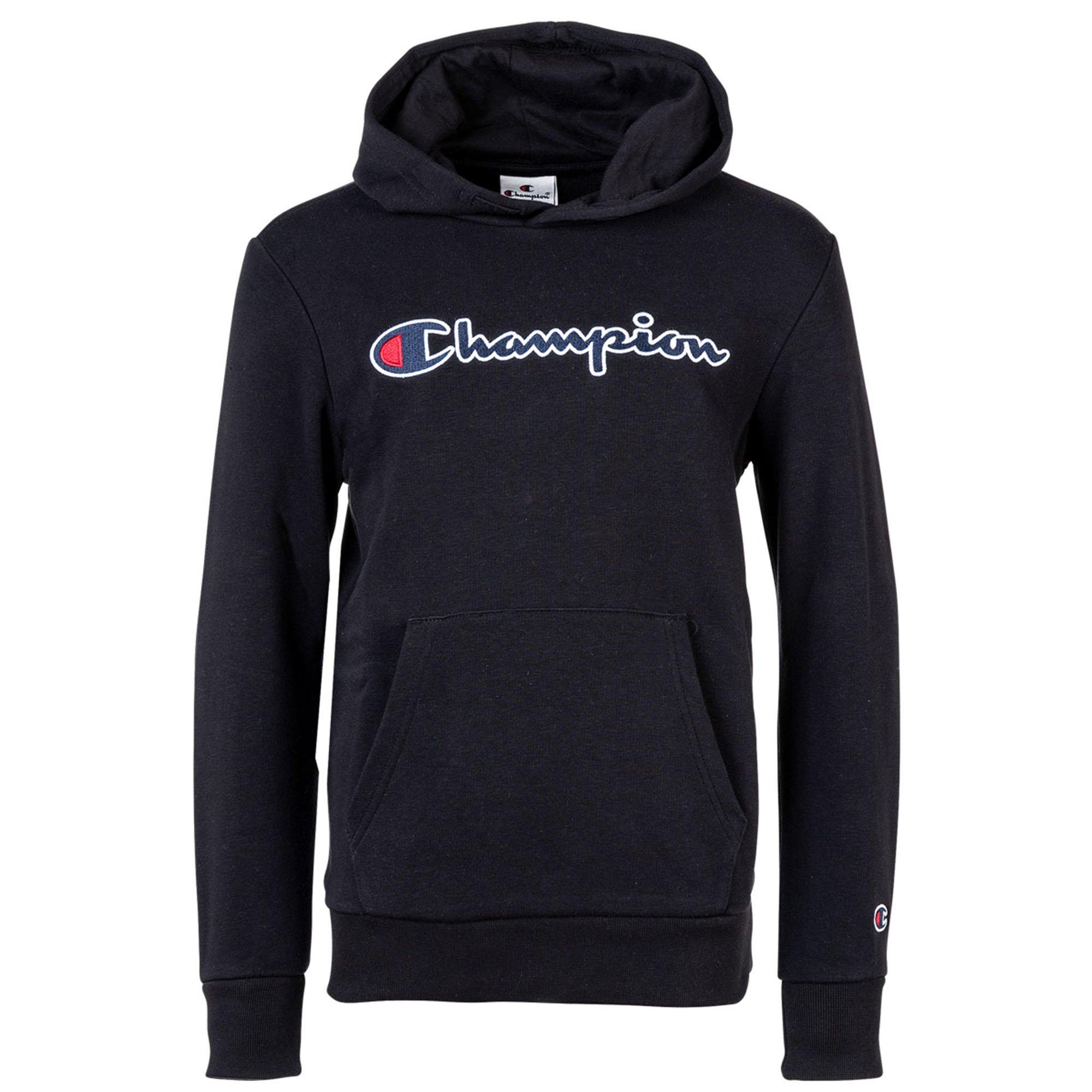 Felpa con cappuccio per bambini e bambine del marchio Champion. Grande scritta sul davanti e piccolo logo ricamato sul braccio sinistro. Realizzato in un comodo misto cotone.
