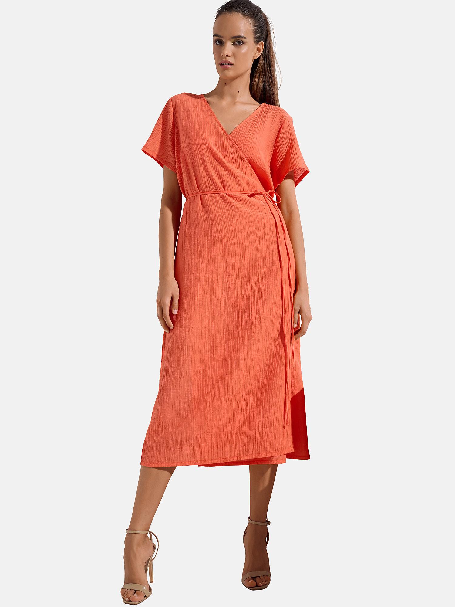 Lunghezza circa 120 cm. Capospalla realizzato in un tessuto piacevolmente leggero, un mix di viscosa, cotone e lino. Questo tessuto è perfetto per le calde giornate estive. I modelli sono estremamente raffinati e semplici e si adattano a ogni figura.