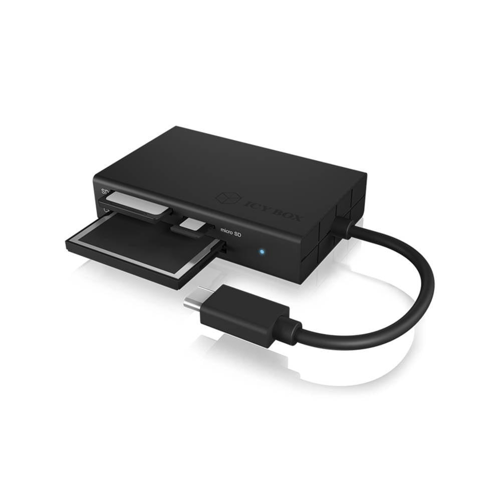 Type-C lettore di schede multiplo USB 3.0 Il tipo C USB 3.0 lettore di schede di espansione è stato per il collegamento del sistema del computer. Con l'IB-CR401-C3 è possibile utilizzare solo una porta USB Type-C del computer SD 4.0, micro SD 4.0 e schede CF. Le schede contemporaneamente di PC, notebook, ecc. possono essere letti o scritti. Il tipo C lettore di schede USB 3.0 con supporto UHS-II permette una rapida trasmissione dei dati anche durante il trasferimento di file di grandi dimensioni o scrivere contemporaneamente più schede. Il nuovo standard Type-C collegamenti USB 3.0 hanno due entscheidenende vantaggi rispetto ai forme esistenti. In questo modo sono più piccola e sottile, sono perfette per computer portatili e dispositivi mobili e non è più necessario, la spina in un senso. Viene sempre e in questo modo all'utente molti piccoli aufreger rabbia. Accessori per il computer utili Poiché i dispositivi digitali come fotocamere digitali, videocamere, dittafoni e altri dispositivi, registrazioni audio e video su diversi formati di schede, per risolvere il problema, è una versatile strumento di trasmissione a portata di mano. È possibile risparmiarvi la fatica utilizzando diverse schede file tra diversi computer e dischi rigidi a muoversi e utilizzare semplicemente l'ICY BOX IB-CR401-C3 lettore di schede Compatibile con diverse schede di memoria Nel dettaglio si ha la possibilità, i seguenti formati di schede SD con il vostro IB-CR401-C3. SDHC/XC, micro SDHC/XC, scheda SD 3.0/4.0 (UHS-I/UHS-II) e schede di memoria CF. È compatibile con la maggior parte dei sistemi operativi più diffusi, e tutto quello di cui avete bisogno è uno con porta USB Type-C o Thunderbolt 3 Type-C computer abilitato per l'IB-CR401-C3..