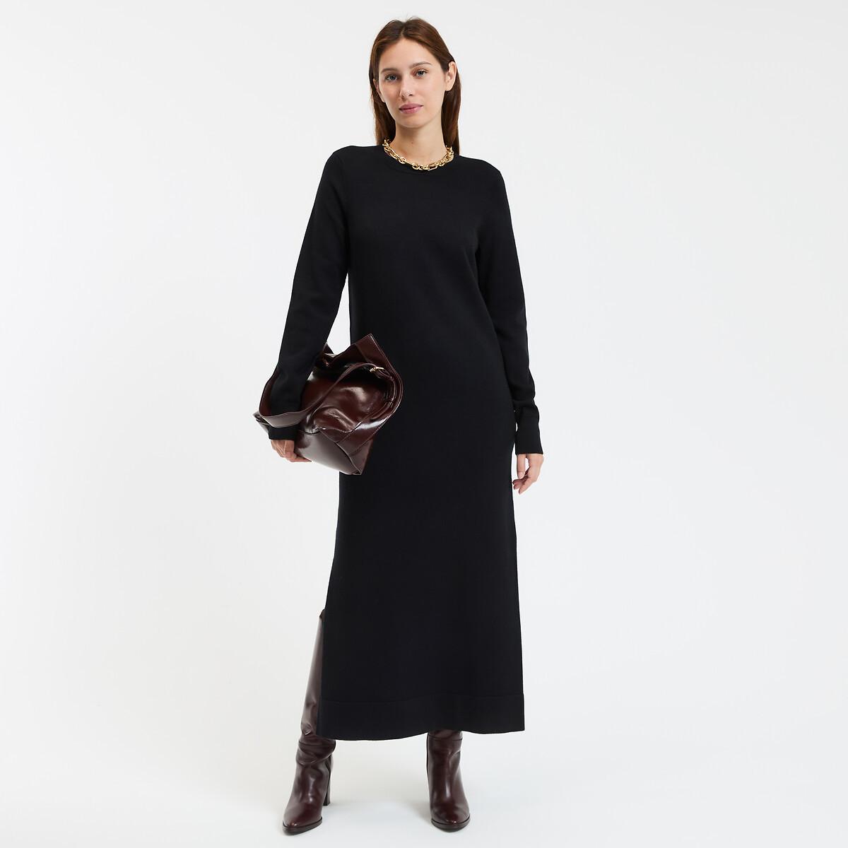 Questo abito in maglia a maniche lunghe offre un'opzione comoda ed elegante per varie occasioni. Il design presenta una classica scollatura rotonda e una silhouette dritta, fornendo una base versatile per diversi look. Gli spacchi laterali aggiungono un tocco di eleganza moderna e consentono facilità di movimento.