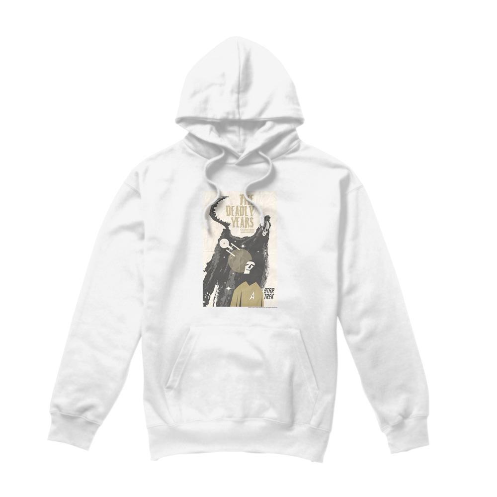 Questa felpa con cappuccio presenta una stampa grafica ispirata a "The Deadly Years", episodio 41 di Star Trek: The Original Series. Il design cattura l'essenza del classico show di fantascienza, rendendolo un capo distintivo per i fan.