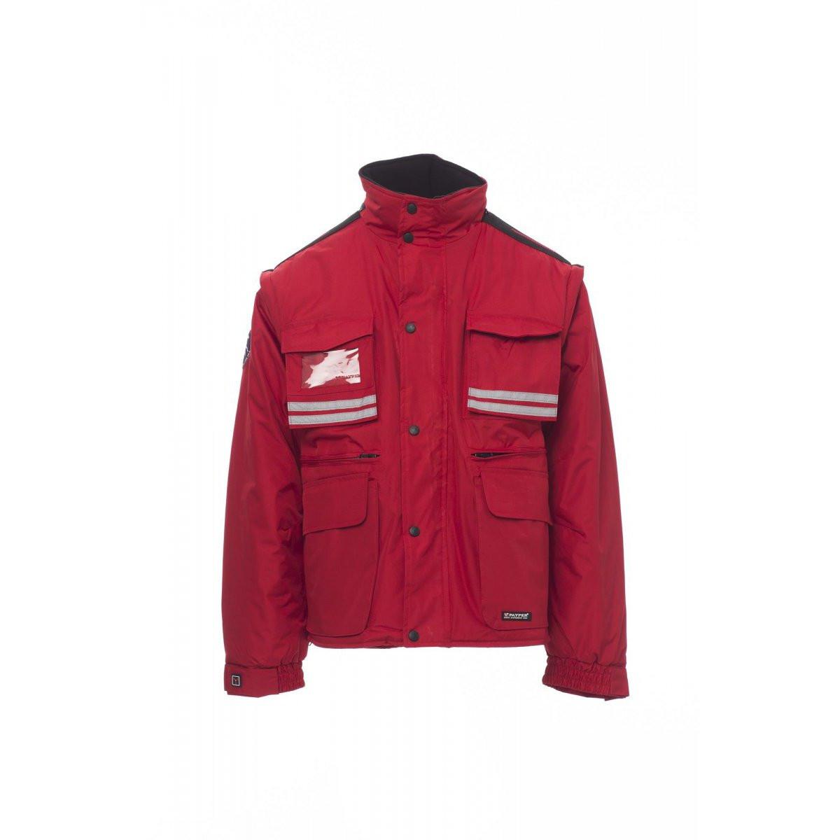 La giacca include nove tasche esterne, di cui due LOCK SYSTEM, due con cerniera e una con porta badge reversibile. L'interno è imbottito con micropile su colletto, schiena e scaldareni. Dispone inoltre di inserti traspiranti sotto le braccia, coulisse in vita e una cerniera interna per facilitare stampe e ricami.