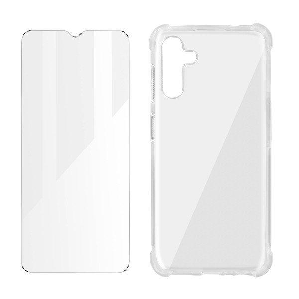 Kit di protezione a 360° Premium per Samsung A13 5G / A04s . Cover in silicone flessibile che lascia visibile il design del telefono. Pellicola in vetro temperato 9 ore antitracce sottile e trasparente: le proprietà dello schermo conservate.