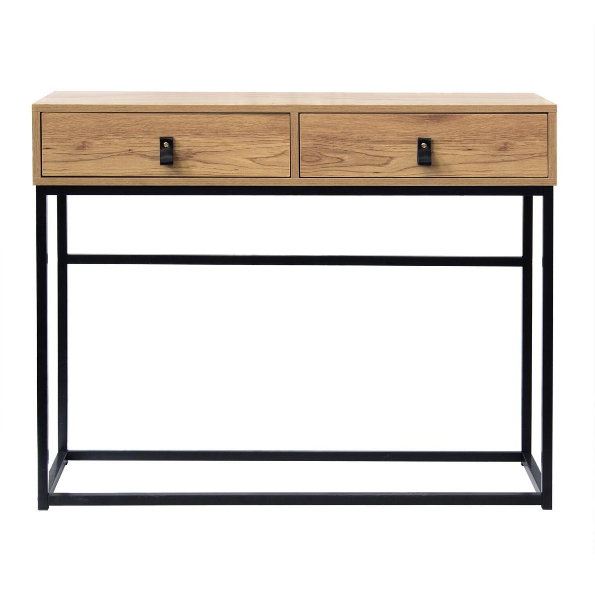 Calicosy, Consolle a 2 cassetti con gambe in metallo effetto rovere - JILL