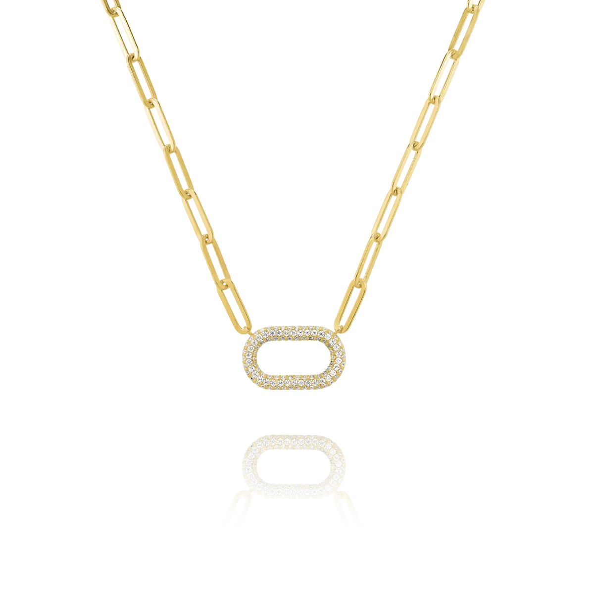 Charles Garnier, STILI Collana con Pendente Ovale in Argento Dorato e ossidi di zirconio