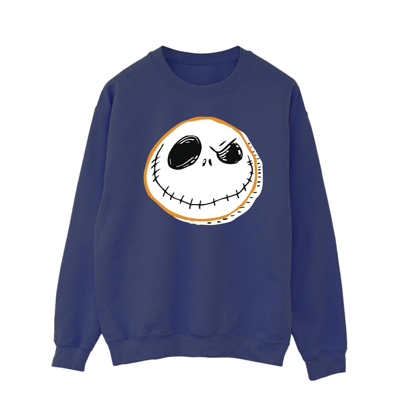 Questa felpa presenta un classico design a girocollo e maniche lunghe, offrendo una vestibilità comoda e rilassata. La parte anteriore è adornata da una stampa grafica distintiva del volto di Jack Skellington, rendendola un capo eccezionale per i fan di The Nightmare Before Christmas.