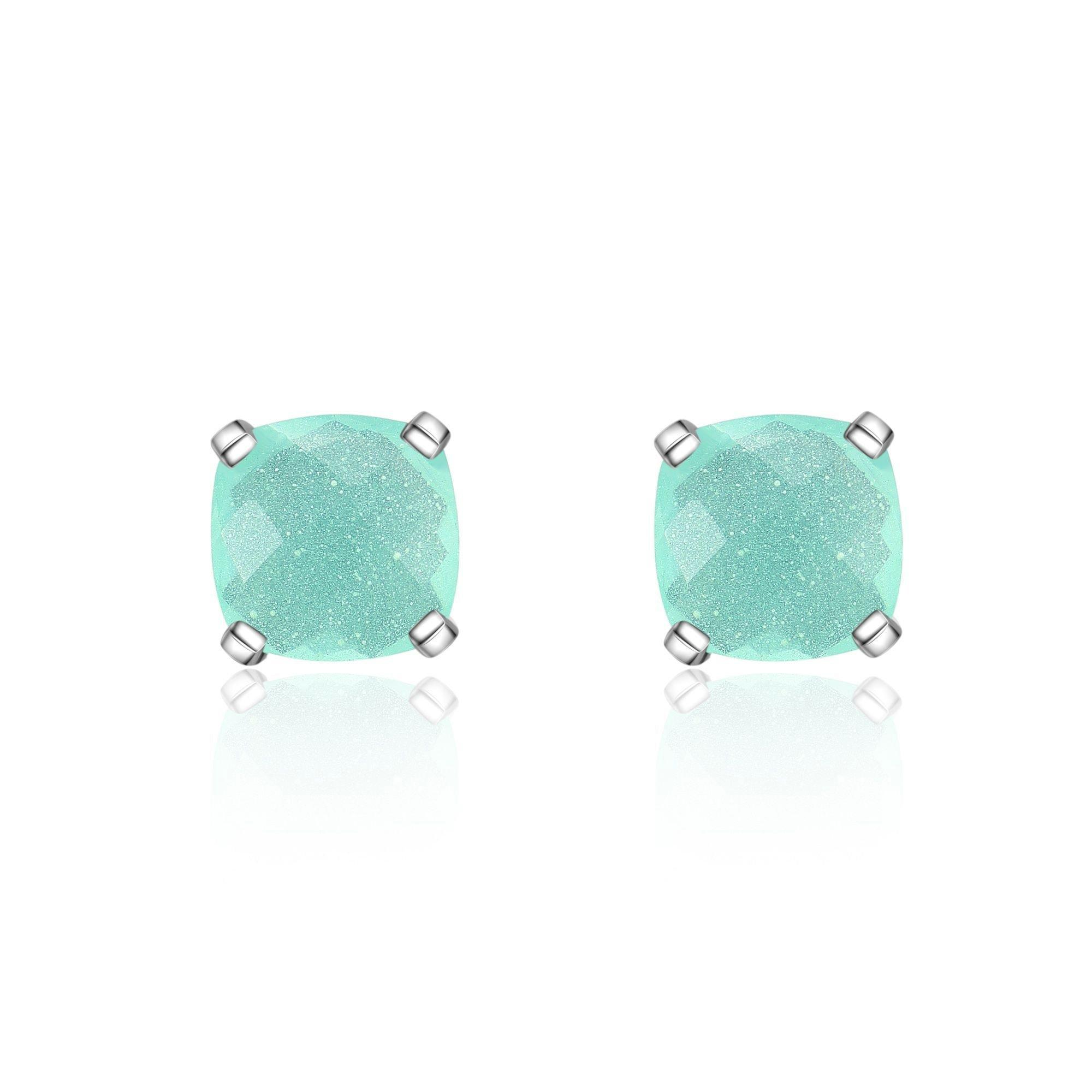 Le borchie all'orecchio in argento sterling 925 di alta qualità con il calcedonio aqua quadrato in qualità AAA sono un accessorio straordinario!