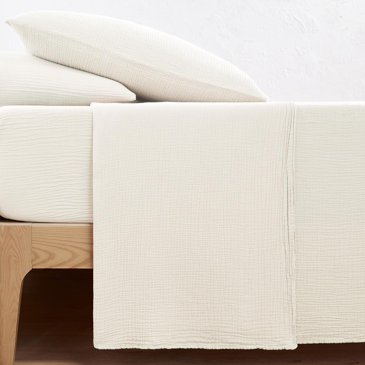 Il lenzuolo superiore Kumla è realizzato in morbida mussola di cotone, offrendo una sensazione confortevole e invitante per ogni letto. La sua superficie testurizzata aggiunge un tocco di eleganza rilassata alla camera da letto.