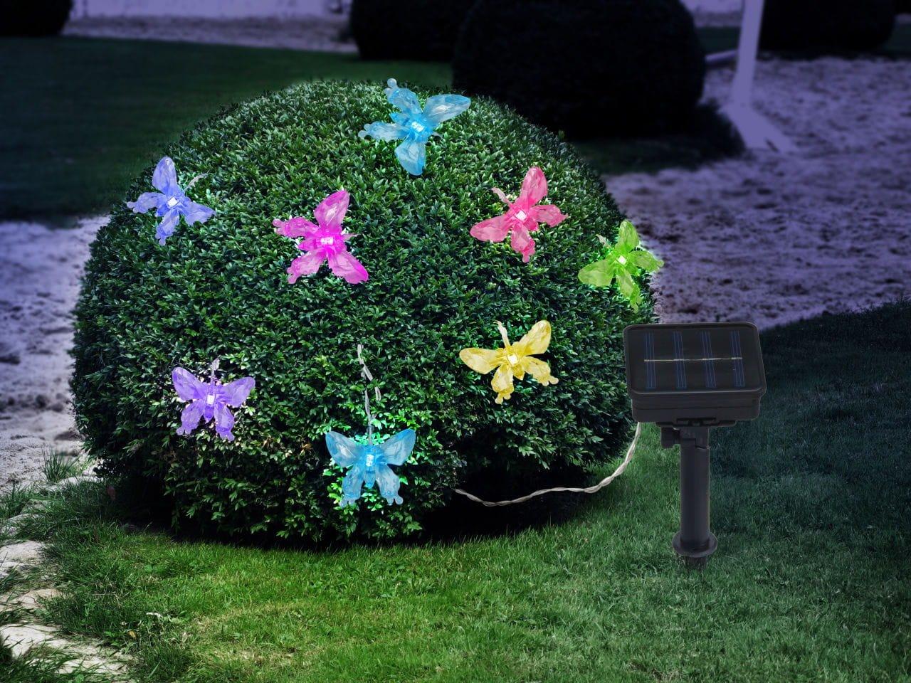 Questa serie di luci solari è qualcosa di molto speciale. Il totale di 10 lampade, che si trovano sulla catena lunga 4,7 metri, brillano attraverso il cambia colori in molti colori diversi e creano cos un ambiente piacevole. Il tutto è completato dalla forma a farfalla delle lampade. Grazie alla classe di protezione IP44 è adatto anche per uso esterno.